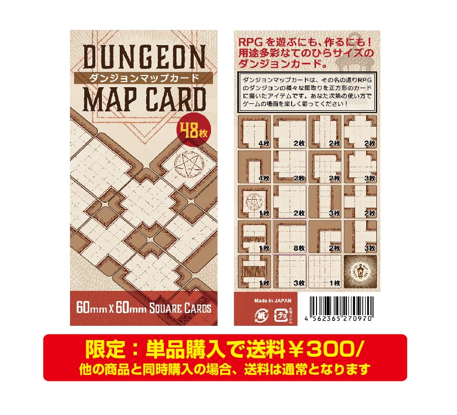 ダンジョンマップカードは、その名の通りRPGのダンジョンの様々な間取りを正方形のカードに描いたアイテムです。あなた次第の使い方でゲーム場面を楽しく彩ってください!
